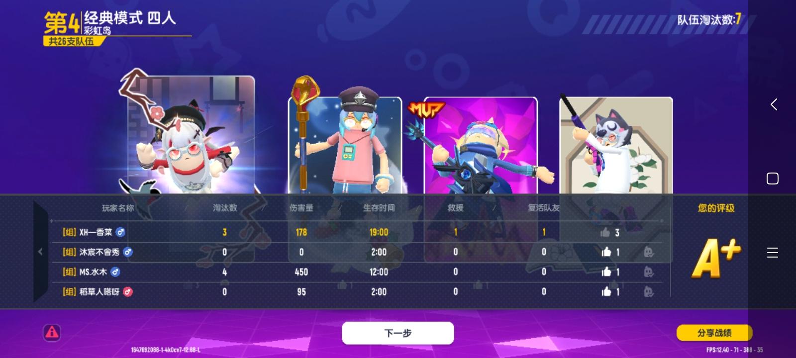 今天也是和沐辰、嗒呀、水木开了一局彩虹岛四排!结果撞车了1990名的车队……
