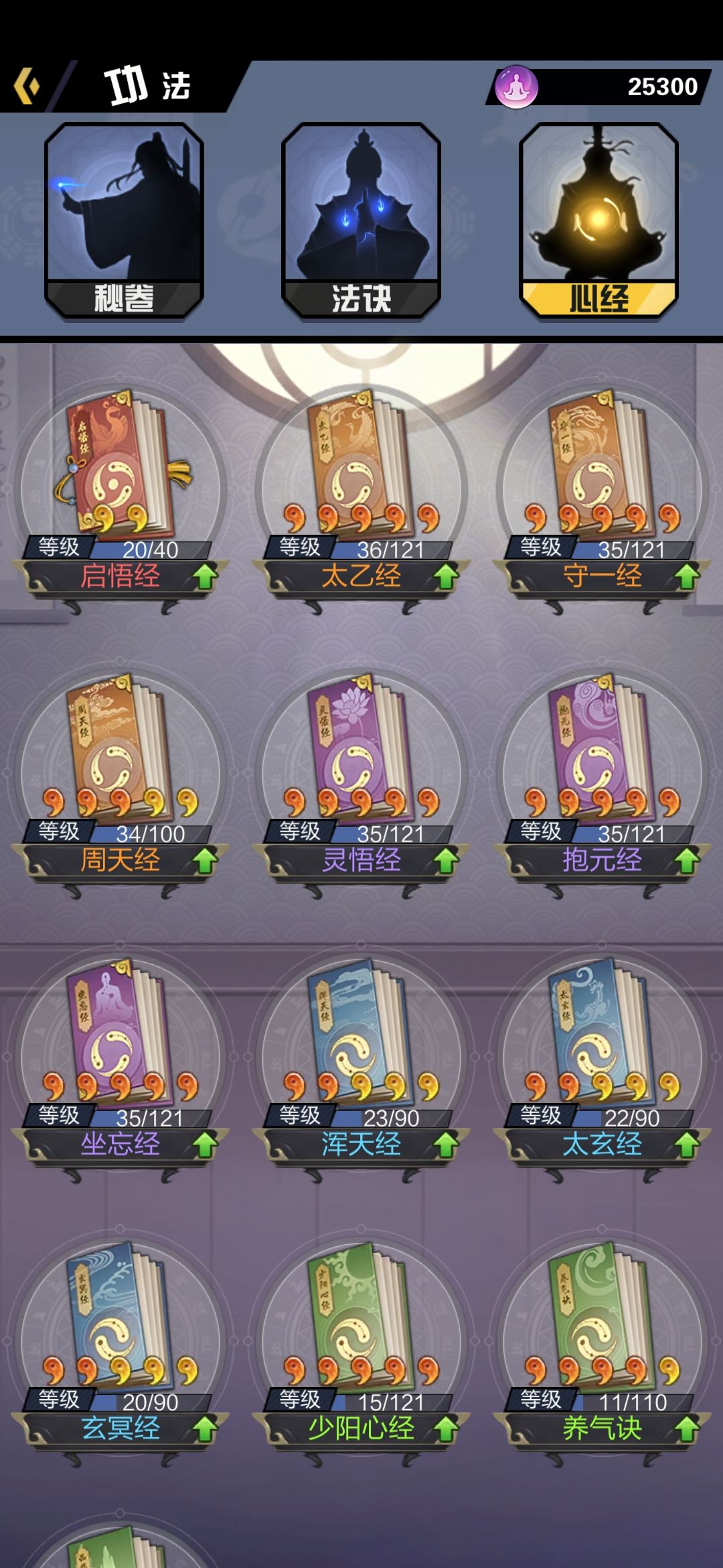 心经:每本心经按照不同的品阶都会提供相应的修炼速度。