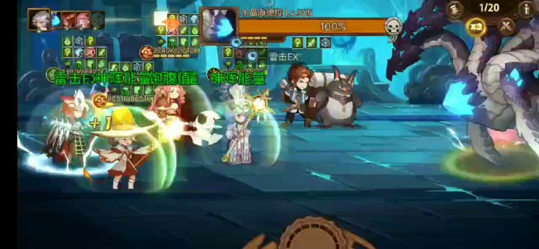 海德拉的冰晶爆发在只有后排一个勇士时不会触发回血,可以利用这点,在最后几回合将心灵火,天使,雷击给到主c,送掉前面三个队友