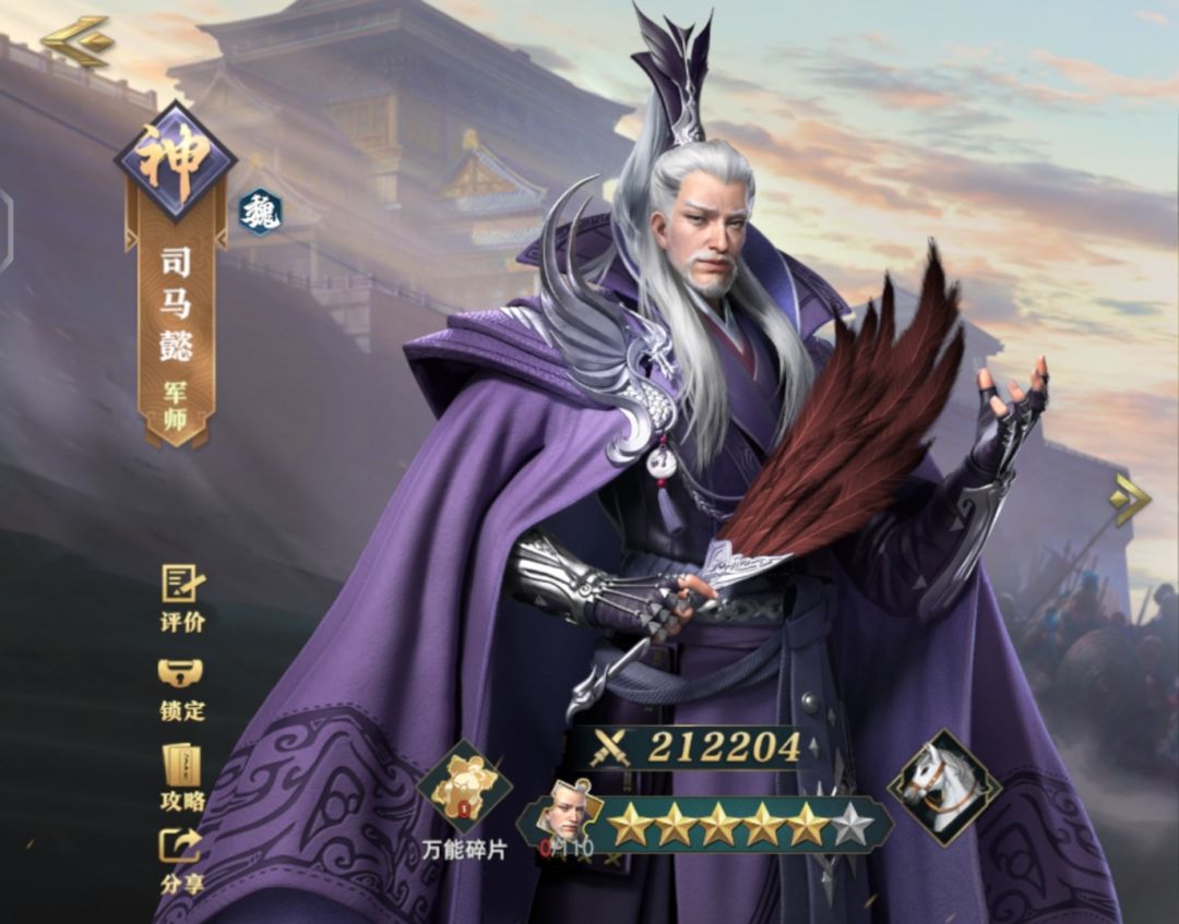 司马懿,魏国二爹(大爹曹老板),只要运气好,可以全员冰冻,硬控软控都有,配合专属马,专克诸葛村夫,吃概率也吃循环,需要顶气,三星可玩,五星最好,懂不懂冰封千里啊(滑稽)