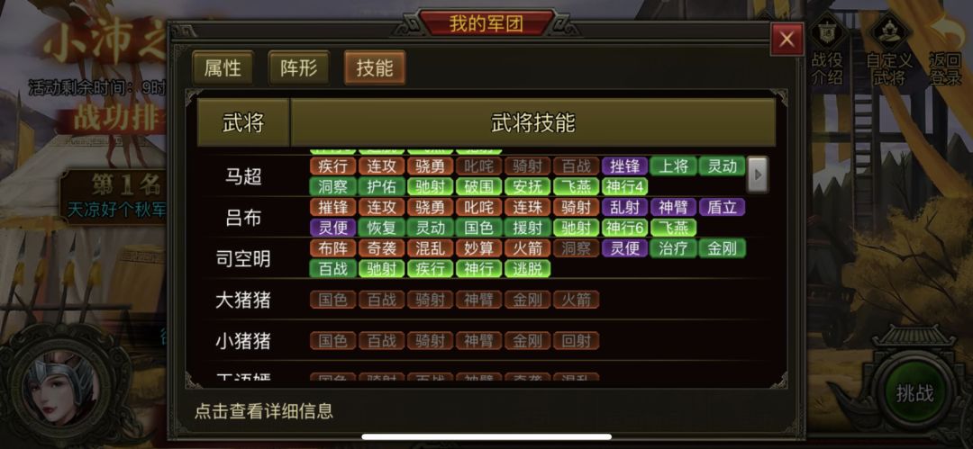 如图0玉0券。科技树,状态两级天气两级经验三级阵型两级。特种兵西凉10,无双2。