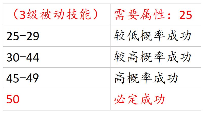 主动技能 和 被动技能 相关属性最低值要求是不相同的。