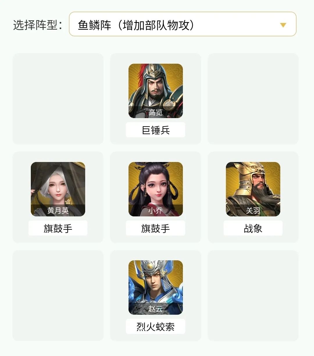 <鱼鳞阵,也可根据单局情况调整>