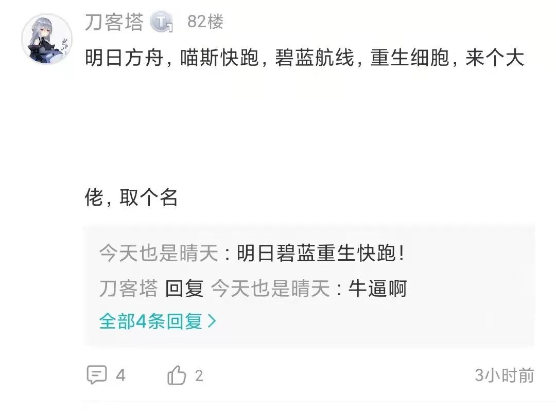 本周论坛的互动话题是“把你最近玩的两款游戏的名字拼起来,会是什么?”各种奇奇怪怪又毫无违和感的组合出现了: