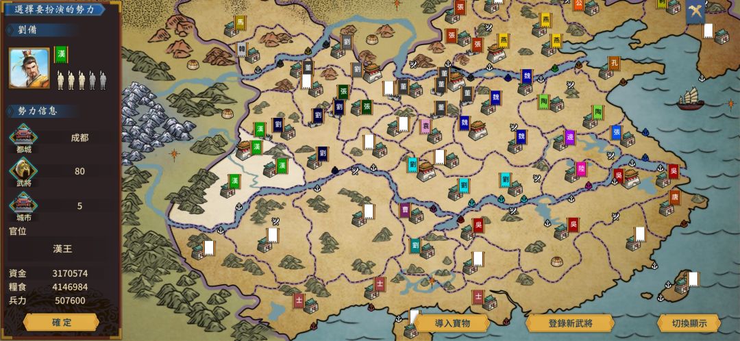 魏汉吴燕(袁绍)四个阵营,开局称王。东汉末年四王争霸,论英雄谁是英雄?(新增95件神器。新增620位女武将,张角势力集体复活,新增张仲景华佗于吉左慈刘三刀等武将。汉末七大都钱粮收益稍微提高。)