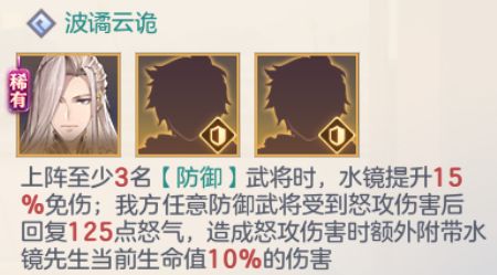 水镜的羁绊解决了长期困扰防御武将的2大问题——怒气和输出。