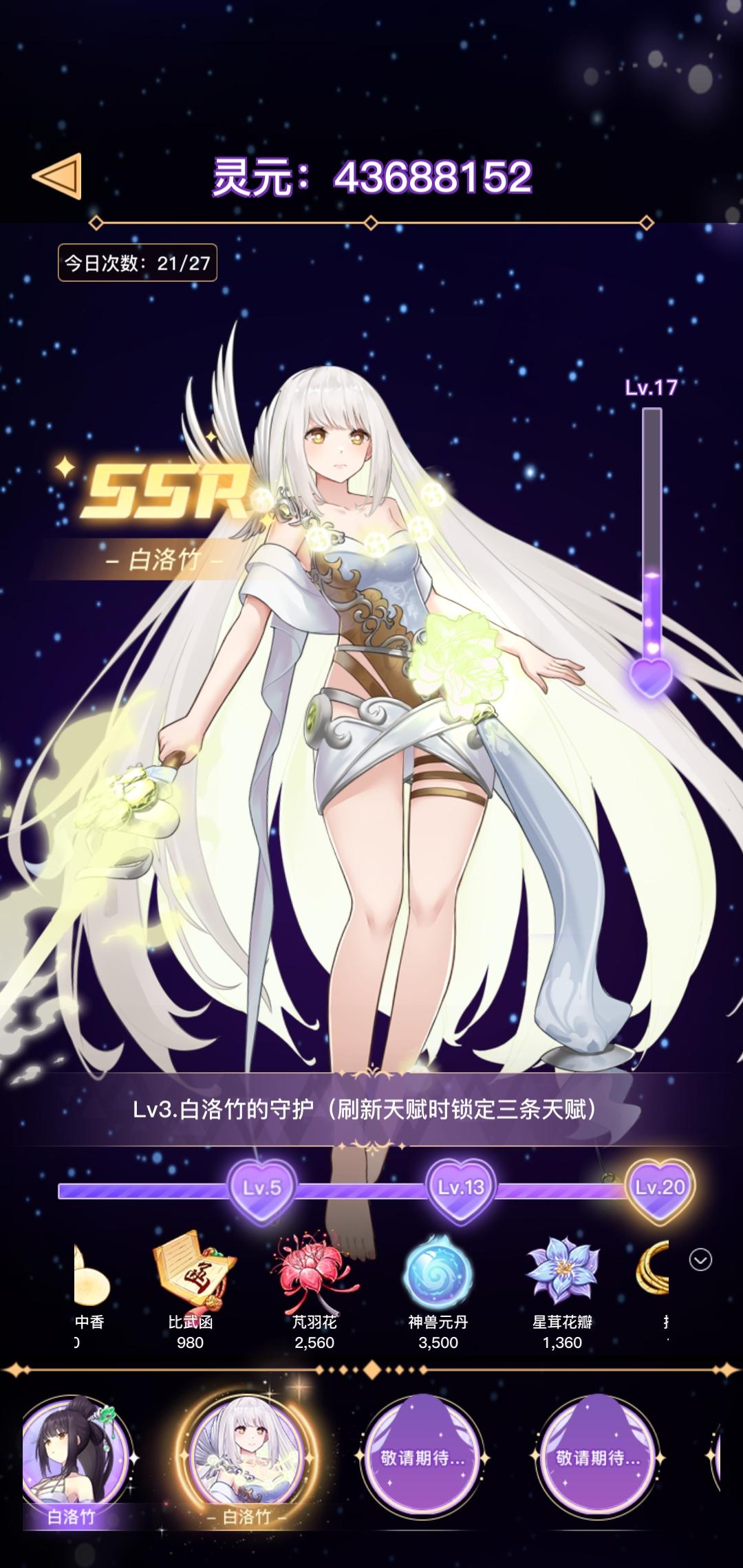 新ssr白洛竹效果贼强(每结束一个好感阶段刷新天赋能锁定一个)