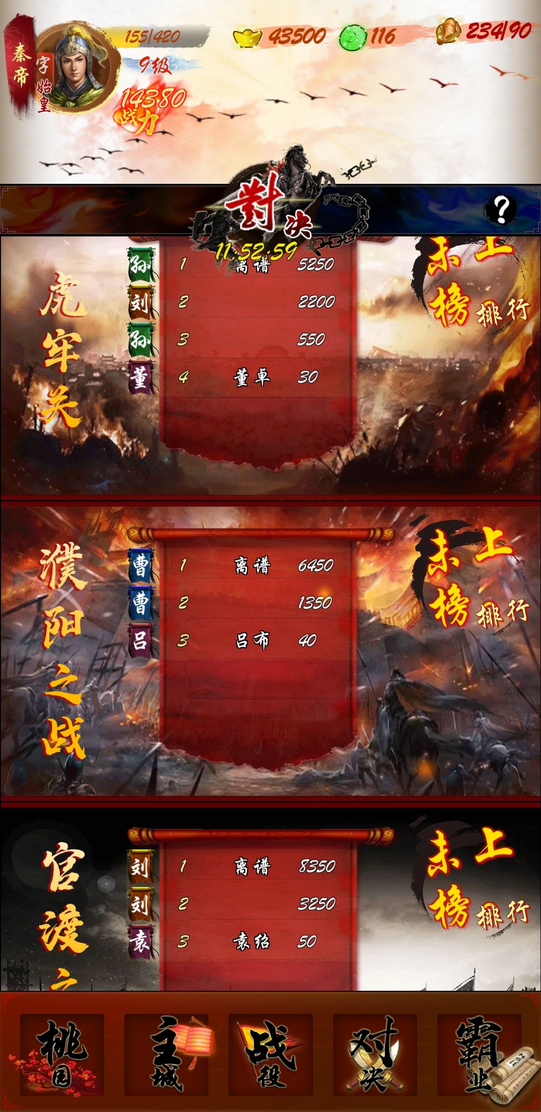 )。这里说一个注意事项,特别是有卡点打对决的大佬需要注意,就是比如你在晚上20:55的时候打虎牢关,这个时候也有一个大佬在虎牢关,2个人都在锤第一的人,如果你在59分的时候打完了,而另外一个在58分打完了。插位排序这个时候会显示另外一个大佬是第一,而且因为后打完就会排第二。所以卡点的大佬,最怕碰上同样卡点的大佬,因为都是卡点,所以就是谁先打完谁第一,因为这个时候,已经来不及再打一场了。所以卡点是个技术活,需要注意一下![[嗒啦啦2_牛逼]](https://img.tapimg.com/market/images/db7cf8ec4c9f8ebacde83ec02c643b50.gif)