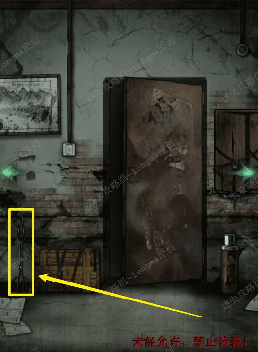 67.将【木柴】放入锅炉,使用【火柴】点燃,记住墙上出现的图案。67 67.1