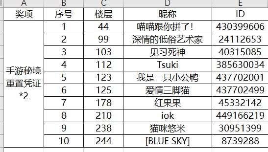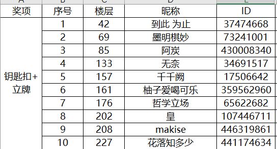 4. 每个ID最多限获得一个奖品,使用楼层数进行抽奖,不同中奖楼层数对应同一ID的,只发放一个奖品,其他奖品将直接顺延至下一个不同的ID;抽奖结果ID不符合活动参与要求的,奖品将直接顺延至下一个符合要求的且未中奖的ID。
