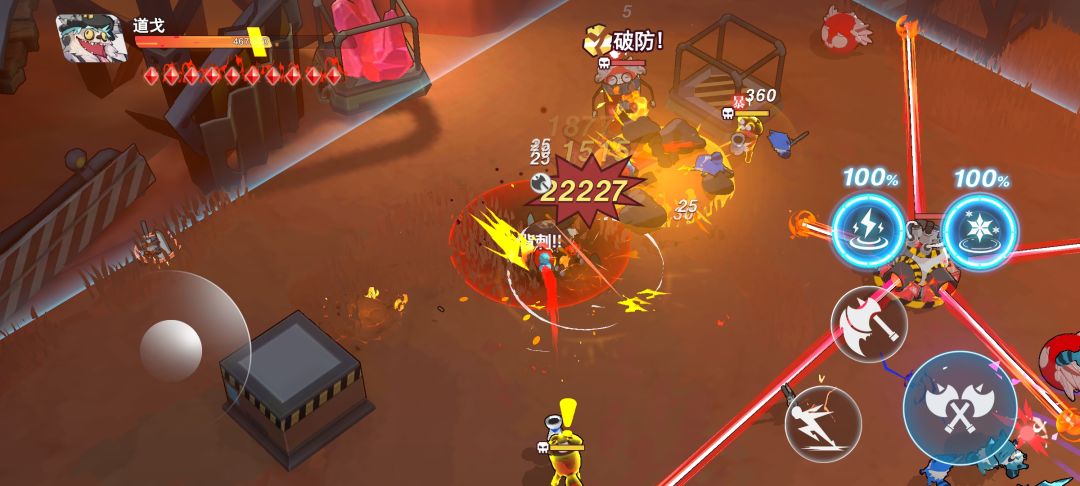 第一个是精英怪,过一会儿就回旋斩,乱打都能过——前期会碰到一个塔连着所有怪物,必须先把塔破掉,不然怪物们防御拉满一次只受一点伤害。