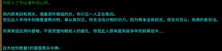 2,和山洞中的双木前辈谈话,打听六派的事情,得到一枚雷霆令牌