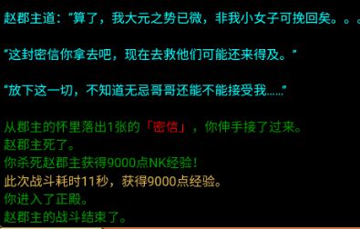 10、到大理皇宫,赵敏郡主会主动攻击,干掉郡主后拿到一封信