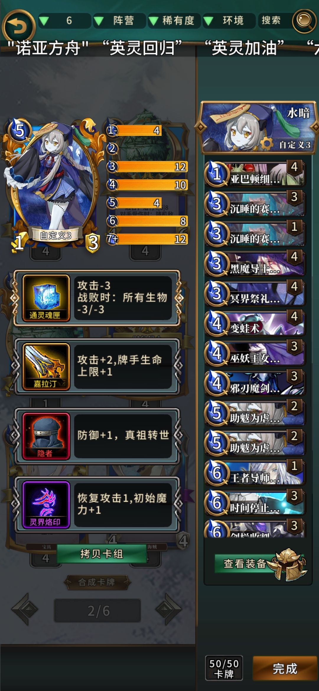 相信大家也看出来了,这套卡主要玩法就是祭礼拉剑兰然后无限复活剑兰来折磨对手,所以在对战奈亚和一众速攻卡组的时候会非常厉害,带了三个蓝神以后奈亚基本上玩不了,速攻也很少能抗得住黑古加上祭礼剑兰的清场,但这套卡组缺点也很明显古神比较难解,不朽也不算很好处理,基本还是要靠呱和黑法师,但鉴于本期女王活动大量的奈亚和莉莉丝出落,这套卡还是会玩的很舒服的。