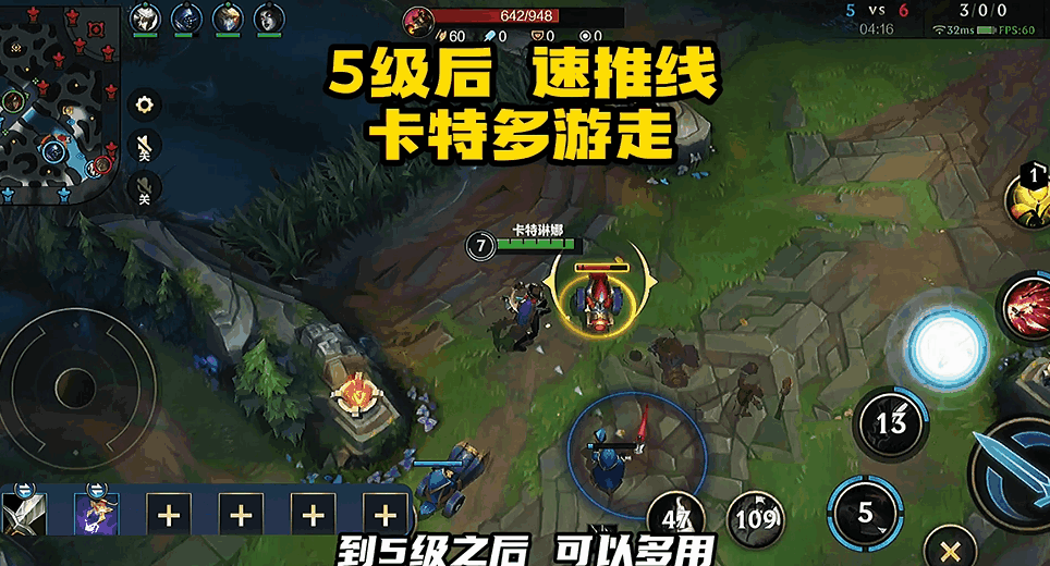 同时,卡特的技能无消耗且W(2)技能可以加速的特点,让卡特随时都能快速跑图支援。在到达5级后,卡特可以多用QEW(132)连招进行推线,从而支援边路进行3包1、4包2帮助队友打出优势。