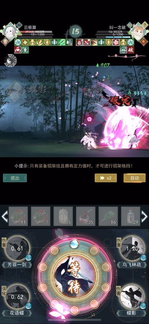 新武学核心理念是保证花蝶buff的全程覆盖实现快速叠盾回血,进入10回合半衰期之后通过蝶影秒人