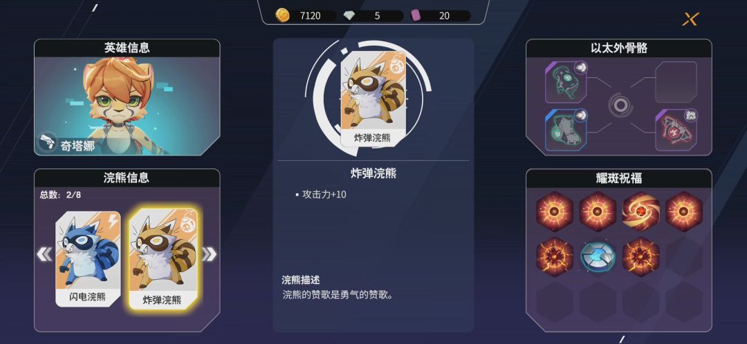 可爱也是《浣熊不高兴》最吸引人的一个地方,在游戏过程中我们也可以救出或者购买浣熊,最多可以带8个浣熊,这些小动物会一直跟着你,用弱鸡但是拼尽全力的攻击帮你打架。凑齐4个同属性的浣熊还可以解锁特殊效果,不过这并不重要,可爱就完事了。