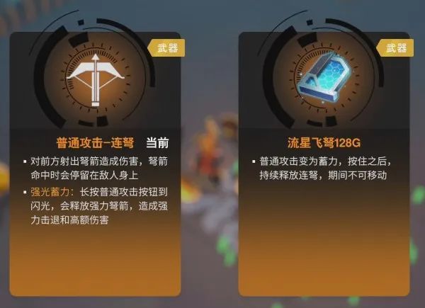 长按的话可以射出蓄力箭,造成更高的伤害。