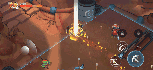 特殊攻击是射出扇形的箭雨,冲刺加普攻是冲刺攻击,会向身边射出360度的箭雨。