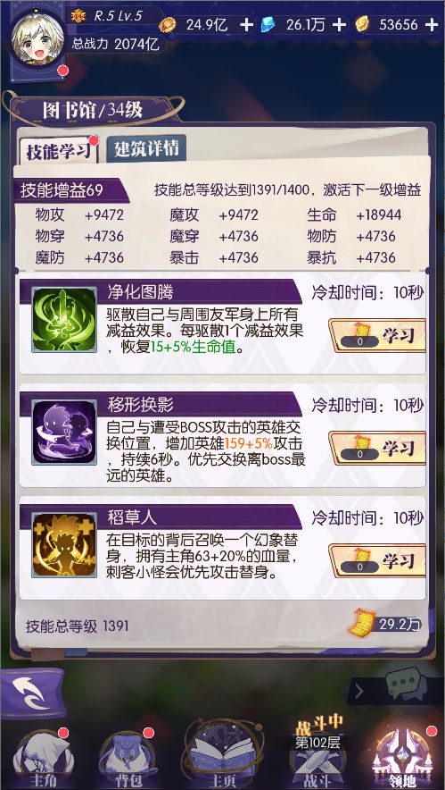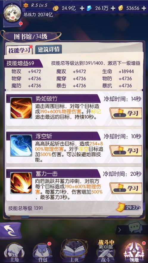 ·图书馆升至34级后,即可解锁6种新技能。