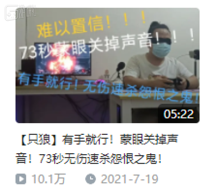 于是在2020年10月,失明在B站上传了自己蒙眼击杀怨恨之鬼的视频,获得了15万播放。