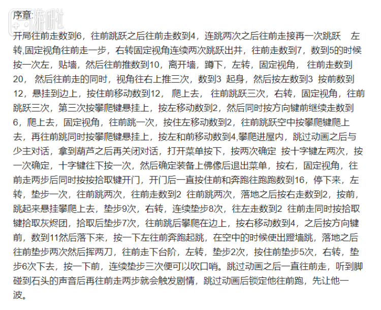 和普通的《只狼》速通不太一样,蒙眼的路线往往不会选择一些极限的跳邪道或者卡Boss,反而会选择更稳妥不容易出错的打法,以便自己能随时在闭眼时为角色定位,尤其是在选择Boss和精英怪的打法的时候,想要击杀它并不算困难,但更重要的是打完以后,得能精准确定自己的位置才能继续跑图。
