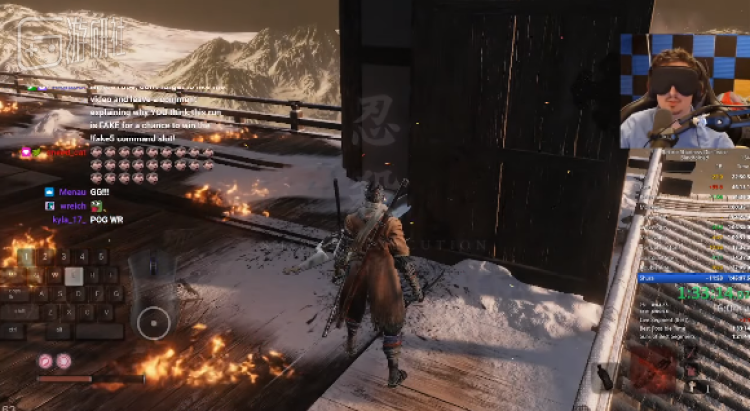 Mitchriz是外国小有名气的速通玩家,在开始蒙眼速通之前,有多项《只狼》的速通纪录都在他名下。今年的AGDQ速通大会上,Mitchriz作为选手现场用更稳妥的路线表演了蒙眼通关《只狼》,解说没忘记提到失明(英文解说将他读作“Just