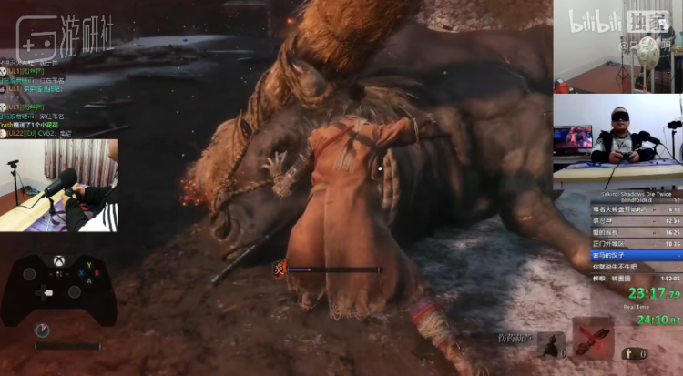 就在一周前,失明参加了B站举办的“吉尼斯之夜”活动,官方邀请了各类游戏高手来现场挑战吉尼斯纪录,失明负责的项目,是在100秒之内蒙眼击败《只狼》里加强版最终Boss心中的一心。