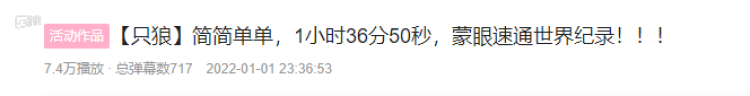 蒙眼打通《只狼》,失明一共成功过两次,两次都打破了世界纪录。文章开头的场景发生在失明第二次打破世界纪录时,一星期前,他刚刚击败长期霸榜“蒙眼速通只狼”项目的外国玩家Mitchriz,以1小时42分47秒创造了自己的世界纪录,第二次挑战又把纪录提升到了1小时36分50秒,比原来快了6分钟。