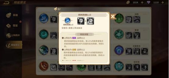 比如由安娜苏和莱娜组成的羁绊王室闺蜜,他们的特技是倒刺荆棘。有12%的概率能使前排英雄获得100%伤害的反伤荆棘,持续5秒。并且特技的威力会随着羁绊英雄的等阶上升而更加强大。