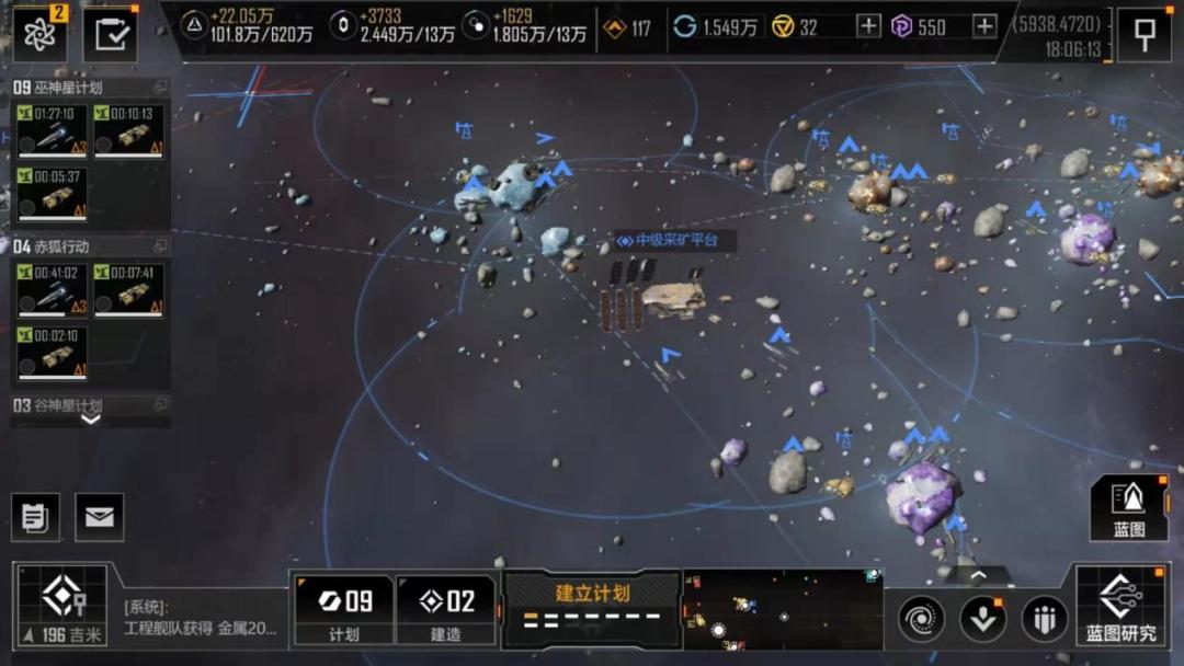 四本: 这里只阐述氪佬运营流程,平民玩家可能吃不到资源合成工厂,这里先不讲。今天的任务就是点下五本,同时搬到小行星带的资源合成工厂里,然后把721拉满中矿车采矿。 首先摇人打资源合成工厂,5-6个人能无损稳吃(前提是都是隐身雷),矿车增援起哨站然后搬家,基地升级升本必须建筑不断,可以不用动员令秒,前哨点下去后开始补721,搬进小行星带后1车晶体,其他全采金属,点下5本。
