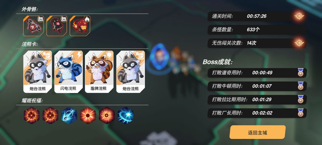 鏖战几小时,失败了很多次终于通关了,就三件装备加几个炮台熊,技能主要是暴击多点,装备也选暴击的,能吸点血的要在商店买,装备技能买贵的和实用的