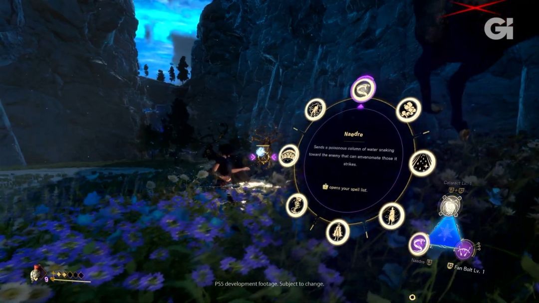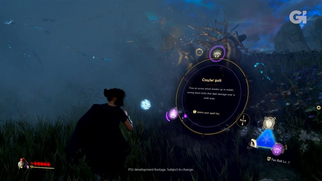 玩家可以将三种元素法术或相同类型的法术能力(比如火、电等)分配到一个三角形菜单中,在冷却期间可以在这些元素之间进行切换。