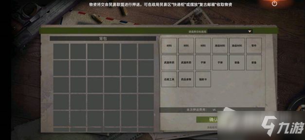 如图所示一次可运3组普通资源材料,2组特殊材料(电子零件等),普通的零件,2组武器或炸药(开服前几天一定有限制),2组子弹,2件装备,1把近战武器,1组药品,1张辐射卡。