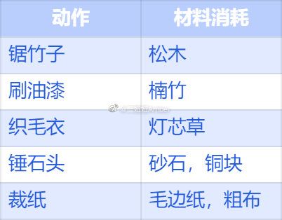 蛙蛙动作与材料消耗存在一定对应关系,具体如图所示。