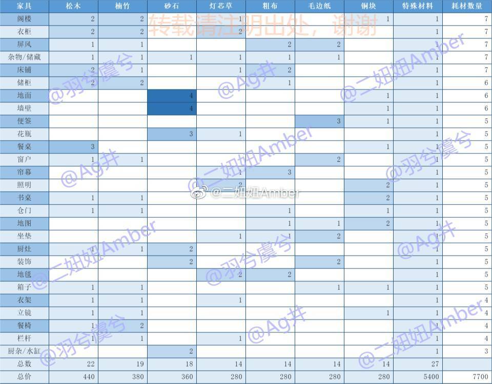 【资料】关于家具材料的数据更新与玩法补充说明