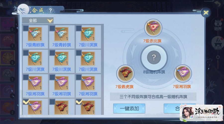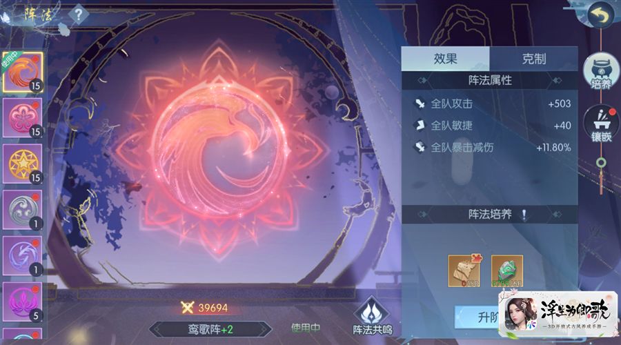 阁下在战斗中,不同的阵法将会因为克制关系触发克制属性。在战斗中,被克制的全队将减少伤害,克制方全队将增加伤害。除此以外,阁下还可在塔居困阵副本中挑战,并获取碎片合成阵法书。而阵法中的阵旗属性则偏向不一,且不同的阵法可镶嵌的阵旗有所限制,高等级的阵旗阁下可通过低一级的阵旗来合成使用。