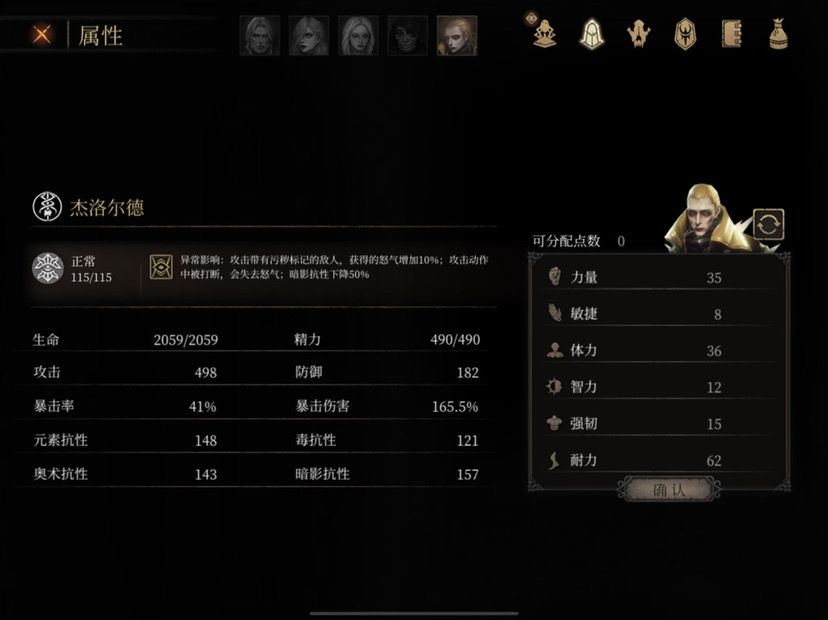 人物天赋练度如下: