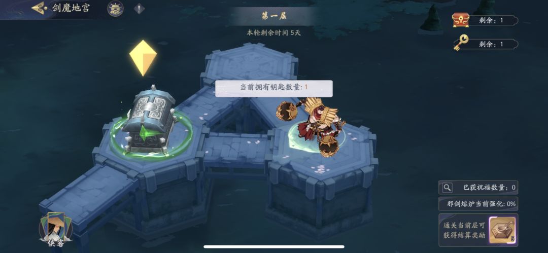 剑魔地宫的宝箱钥匙在哪啊?进去就动不了