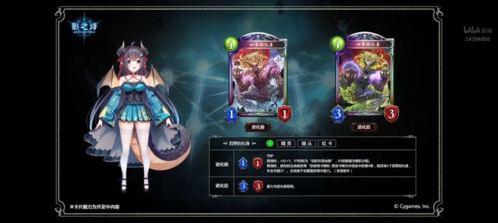 离场时,使你的主战者获得“你使用卡牌时,若该卡牌为本回合中的第4张,则召唤1个四季的化身,失去本能力”,主战者不会重复获得此能力。