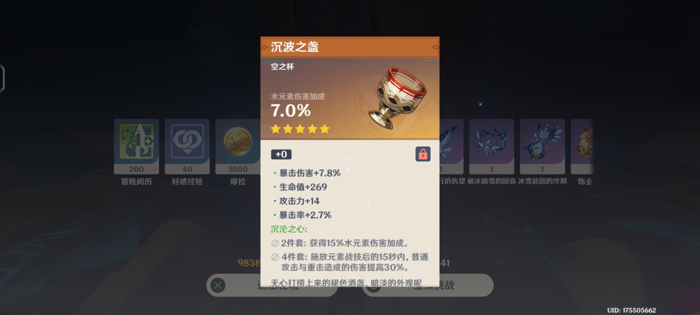 本来给神里刷圣遗物呢,忽然出来一个水上杯,就歪了一次小攻击,公子杯子直接毕业了啊