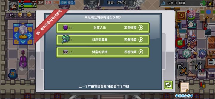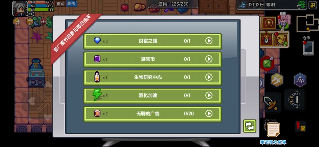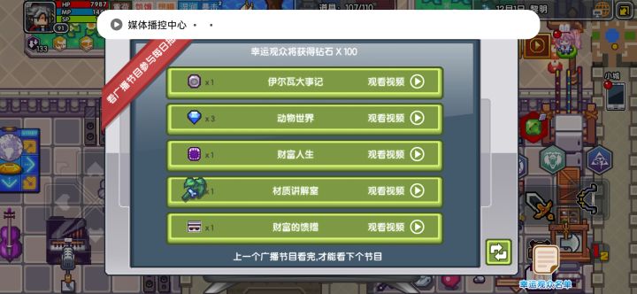 个人推荐,养宠物急缺资源的第一页全看,拿录像带(也可以打工,几率加潜力,每日打完后就把队友放去打工),休闲就看2个拿钻石就好了。第二页的钻石同理,属于必拿。至于力草,想要就要,金色游戏币,看个人情况,想要就要,比较费些时间(要累计看20次才给)想要好胚子或是活武器升级的可以择情,不推荐