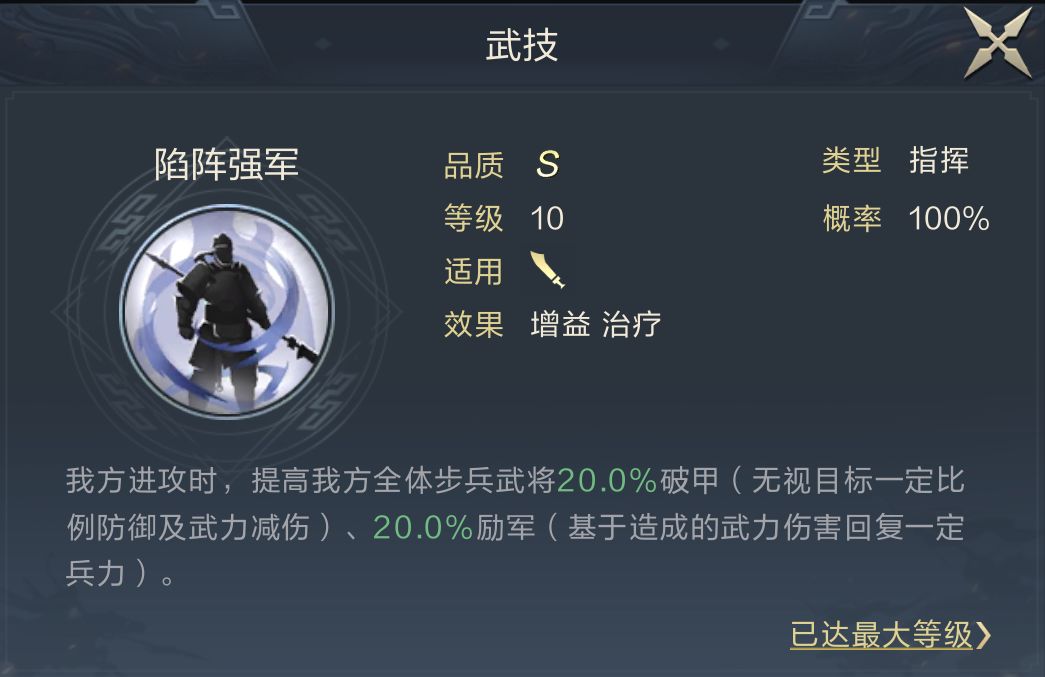 孙坚推荐搭配博闻范策与陷阵强军,前者稳定复制源清流净为香香提供增益刷新,后者为其提供高额破甲与励军,让香香在前排时有更高的伤害输出与自我恢复能力。