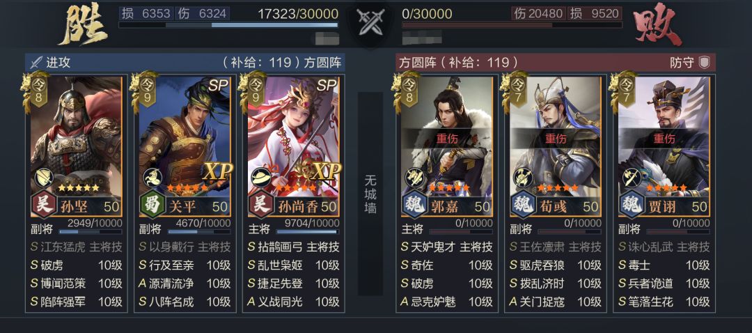 ②SP关平(武力>SP孙尚香,其余防御)