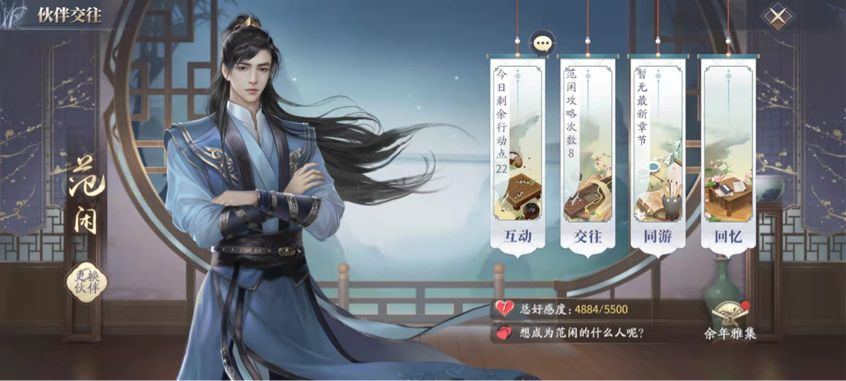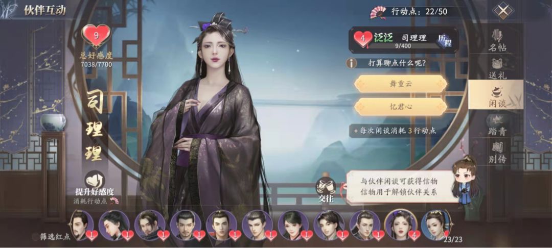 此外,天脉者还能消耗行动点,与特定伙伴进行踏青、闲谈等互动。