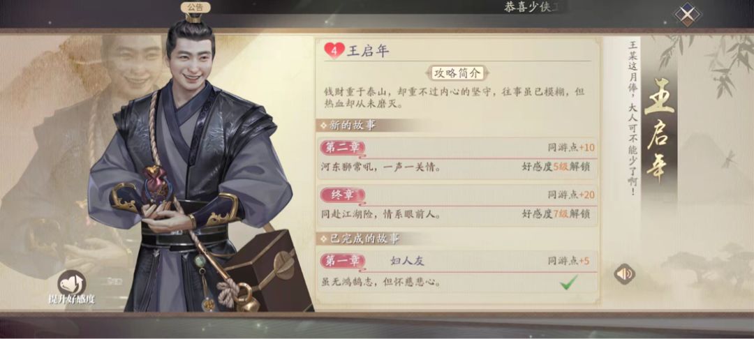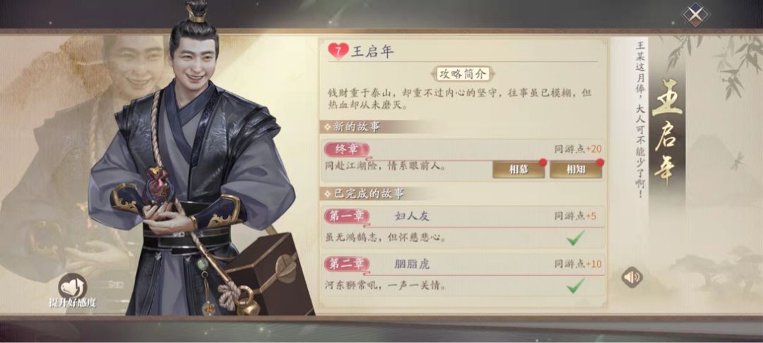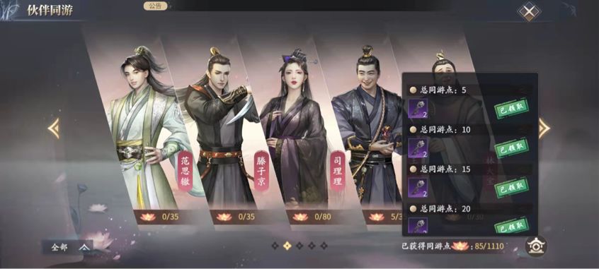 一些伙伴好感度达到一定等级时,就能开启专属的伙伴同游任务。