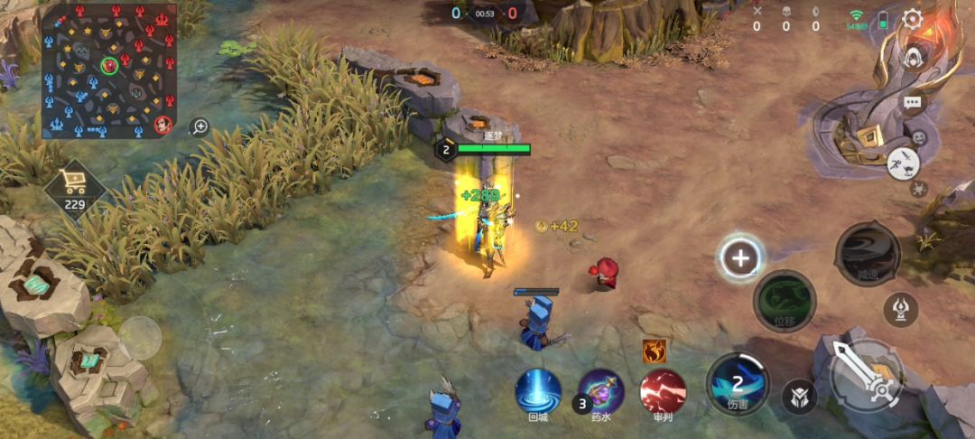 这个是不补刀最后一个小兵的经济,42块,比补刀的50块少了八块,补刀经济约19%