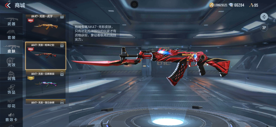 最后,辛苦了4个赛季的排位大神们终于可以购买枪神之影了!这款皮肤的获取难度却非常高,需要3888钻石和整整8枚传奇币,钻石倒不难,难就难在那8枚传奇币。每个赛季只能获得2枚传奇币,大家要花半年以上的时间才能集齐8枚传奇币。只有连续4个赛季到达枪圣段位,且在当前赛季达到枪神段位的玩家才有资格购买它!