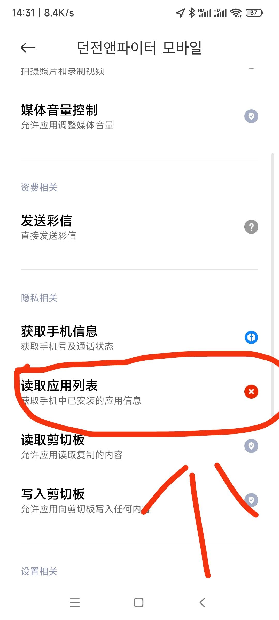 同志们遇到这个提示关闭游戏的读取应用列表权限就行了。