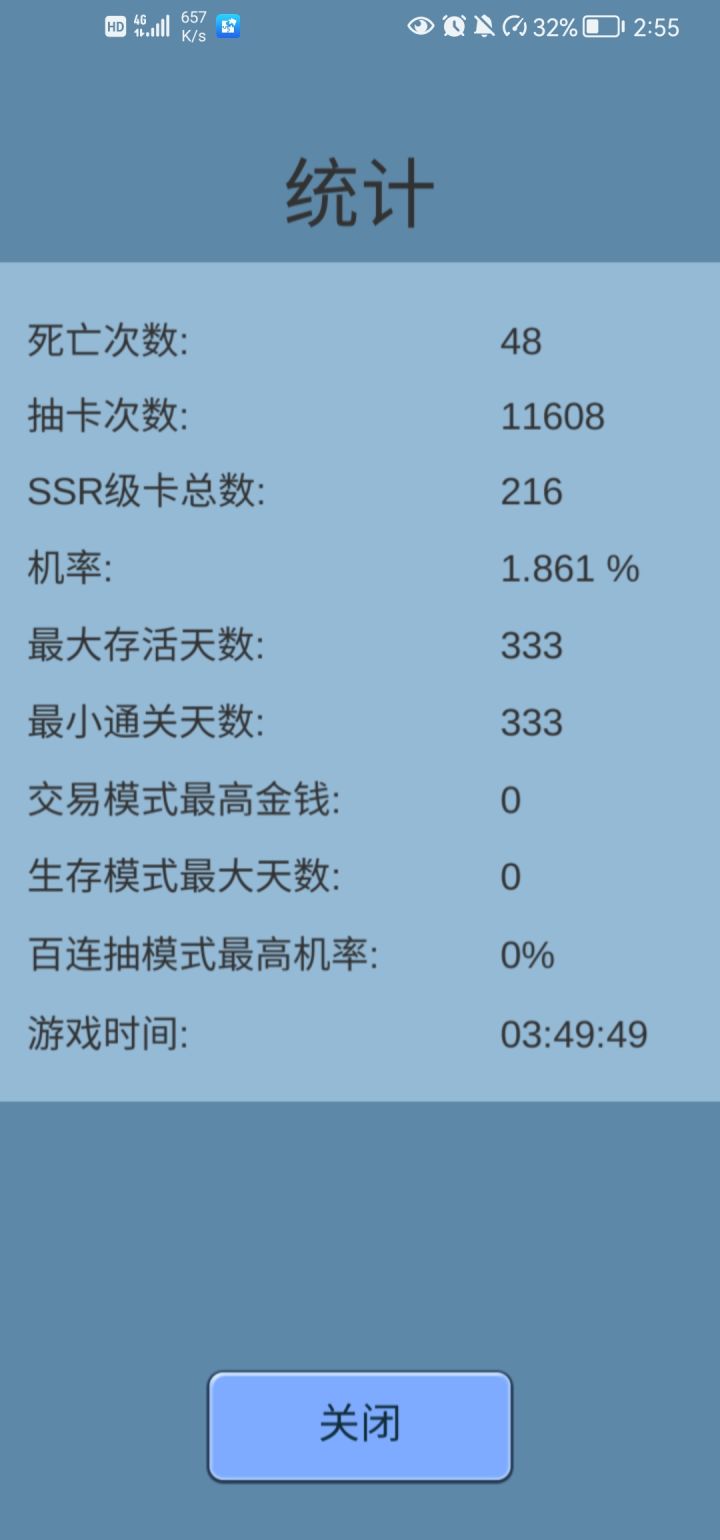 我点了3级提升轮概率,7级食物,6级水,过关。花了三个多小时